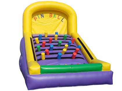 高さが4mもあり、やや目立つエアービッグピンボールです。大人が片手でつかめるほどの大きさのボールで、ピンをめがけて投げます。 下に落ちてきた時に、設定された受け口に見事入れば当たり!という簡単なルールで遊べるゲームです。 お祭りや縁日、夜店などのゲームコーナーに設置できます。設置も空気で膨らませるだけと容易にでき、片付けも空気を抜くだけです。 景品が必要な場合は、お客様のほうでご用意をお願い致します。