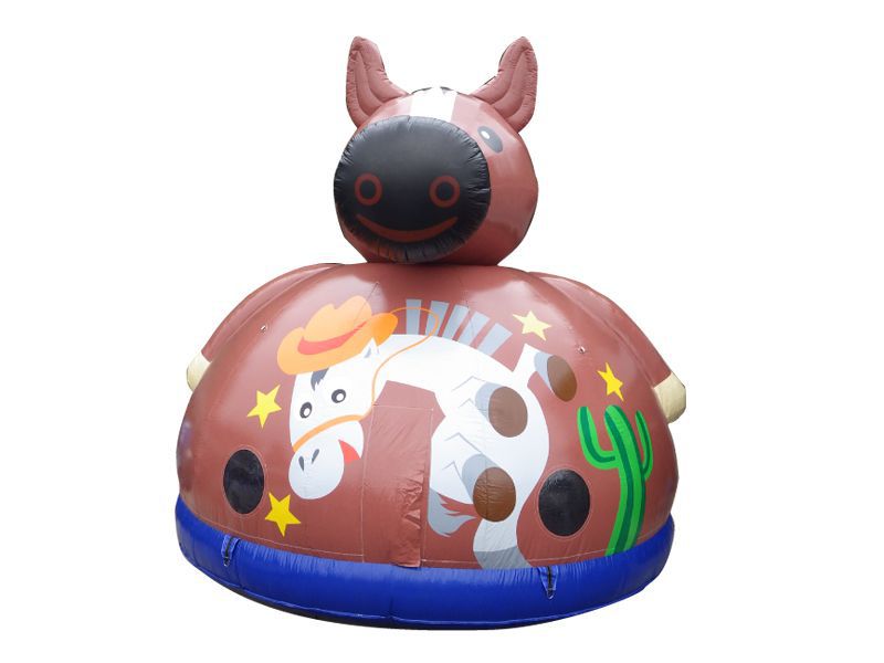 見た目がユニークなうま型エアードームのご紹介です。 送風機で風を送り込んで、完成させるだけで、高さ7mのうま型エアードームができあがります。 対応人数は12名まで一度に入場可能です。 中では飛んだり跳ねたりと好きなように遊べますので、パワーのあり余ったお子様を発散させるには絶好の遊具です。 ご家族連れの多いイベント会場にいかがでしょうか。