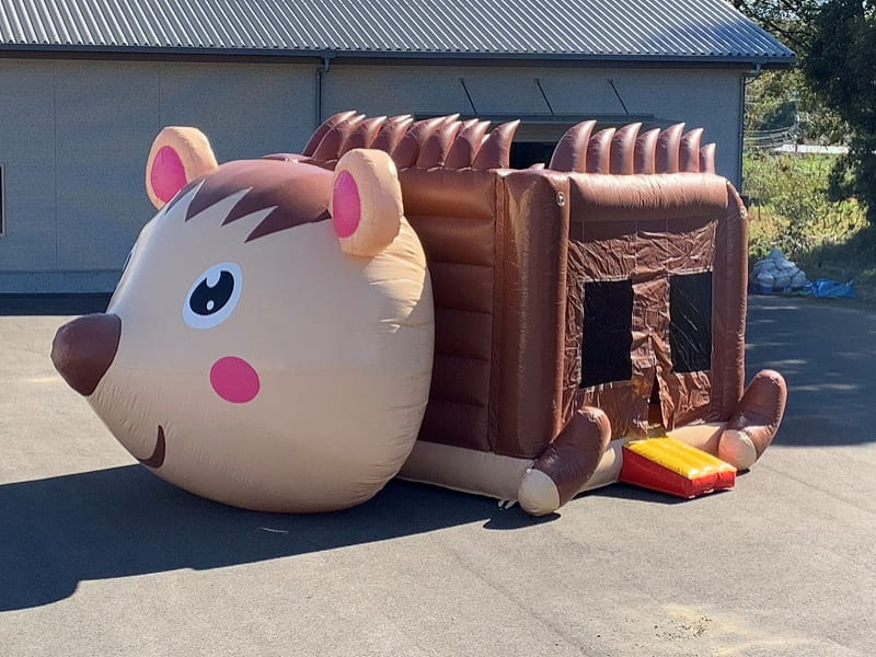 キラキラした瞳が印象的なハリネズミのエア遊具をご紹介します。 小さなお子様でハリネズミを知らなくても、このハリネズミバウンスを見ると、中に入って遊びたいと思うに違いありません。 入場者可能数は1度に8名様までで、窓から内部の様子をしっかりと見ることができるので保護者の方も安心できます。 弊社にはその他にもさまざまな動物をモチーフにしたバウンスをご用意していますので、お気軽にお問い合わせください。