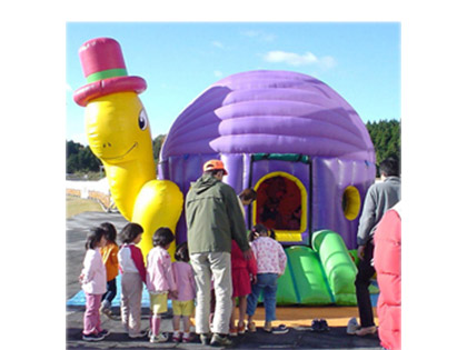 送風機を2つ使って空気を送り込んで膨らませるタートルエアドーム レンタルのお知らせです。 エアドームの中でも、こちらは一度に入場できる人数は5名までとなっていますので、比較的コンパクトなサイズものもになります。 少人数ずつでも子供達を楽しませたい、遊ばせてあげたい思いを叶えるエアドームです。 また、設置場所もそれほど広くなくても使えますので、是非ご検討ください。