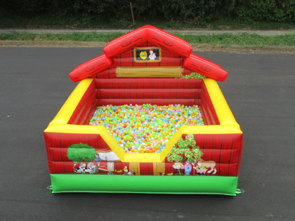 小さなお子様はこのようなたくさんのボールに埋もれたり、潜ったりするのが好きです。 こちらのファームボールプールは、上の方にはにわとり、下の方には牛や馬などの動物のイラストが描かれた賑やかでポップなデザインをしています。 そのままでもキッズ向きでかわいいですが、ボールがあることでより一層賑やかさが増します。 ボールはその他にも、上からバラバラと落としたりと子供達がたくさんの動物たちに囲まれた状態で好きなように遊ぶことができます。 ファミリー層が集うショッピングモールのイベントなどでどうぞご活用ください。