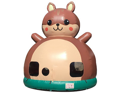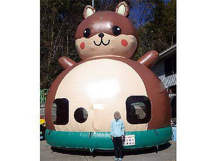 一度に10名様まで入場できる、大き目サイズのリスドームのご紹介です。 ブロアーで大きく膨らませるだけで、簡単にできあがります。 リスのお腹の部分の一部がメッシュになっていますので、外から保護者の方が見守ることができます。 ファミリーイベントの開催時に、子供達の遊び場としていかがでしょうか。
