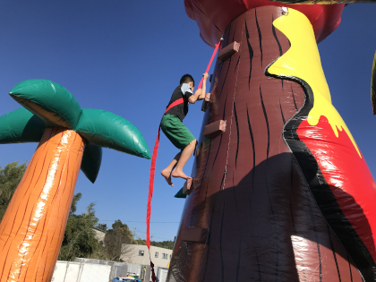 大人も子供も体を動かしたい方にお勧めの冒険ボルダリングゲームのレンタルページです。 空気を入れて膨らませて設置するだけなので、非常に簡単に設置ができるエア遊具で、一度に2名様まで同時に遊べます。 遊び方は中央に立っている火山にロープを使って足場を次々に移動しながら上っていき、頂上を目指していきます。