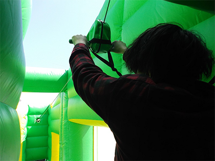 - ふわふわやエアー用品の設営及び運営を行う際、最低1名は十分な知識や経験のある方を配置してください。