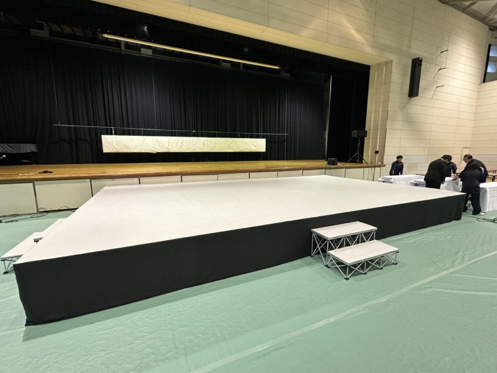 先日千葉県のとある高校の体育館前面にフロアシートとステージを設営してきました!