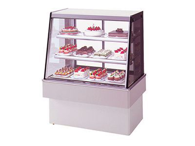 4面がガラス面になっている冷蔵ショーケースのご案内です!デザートや食料品などの展示や販売時に