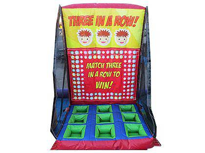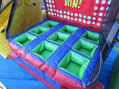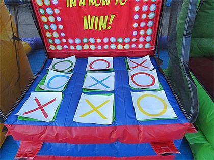 送風機で空気を送り込んで、完成させるだけで簡単にできあがるスリーインアロウゲームです。 こちらのゲームの遊び方は、縦、横、斜めのいずれかに3つ並んでボールを入れられるかどうかという遊び方ができます。 写真の○×シートは2人で対戦する場合に、入った場所の目印として使用します。 もちろん1人で遊ぶこともできますし、○×シートを使って友達と対戦して遊ぶこともできます。