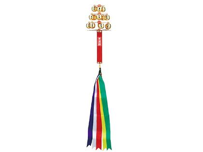 小さな鈴が山なりに多数ついた神事用の鈴の神楽鈴のレンタルページです。 清々しい鈴の音には心を落ち着かせる効果や魔除け、また神様を呼ぶ効果があると信じられています。 通常は神社の巫女が神楽舞の際に使用する鈴ですが、祈祷の時や、能や歌舞伎の演目である『三番叟(さんばそう)』 にも用いられています。 地域のお祭りにもお使いいただけます。
