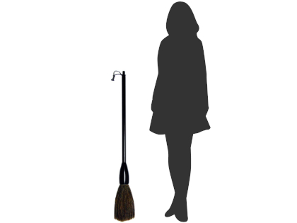 こちらは巨大筆のレンタルページです。 通常のお習字に使う筆の何倍もの大きさで、全長が1.15mもある書道パフォーマンス用の特大筆です。 高校の書道部がテレビで披露する大きな紙に毛筆で文字を書くパフォーマンスをご覧になったことがある方も多いと思われます。 この筆は両腕で持って、腕や体を巧みに動かしながら文字を書きます。 墨をたっぷりつけて、迫力のある書写が可能です。 書写のイベント本番や練習、展覧会、国際交流、和イベントの会場でのパフォーマンスにお使いいただけるアイテムです。