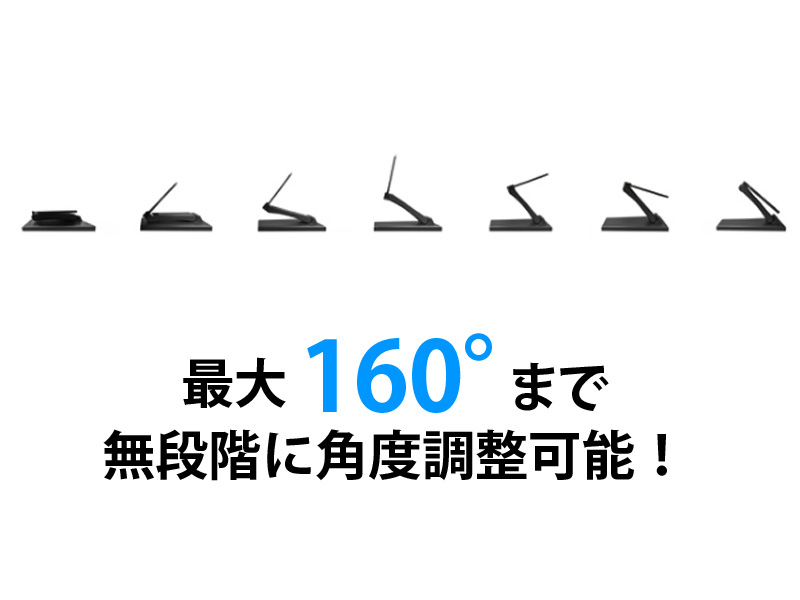最大160度まで無段階に角度を調節できる画面アングル調整スタンドのご紹介です。 パソコンの画面を見ながらプレゼンをする時、また説明会などで資料を見る時に画面が見にくいことはありませんか。 画面の角度によっては、光が反射して見えにくい時があったり、グレアが邪魔してしまうことがあります。 そのような時に必ずお役に立つ画面アングル調整スタンドです。是非会場に一台どうぞ。